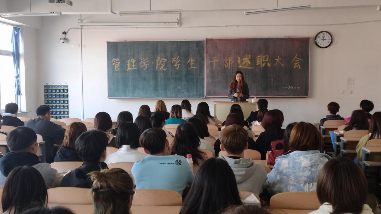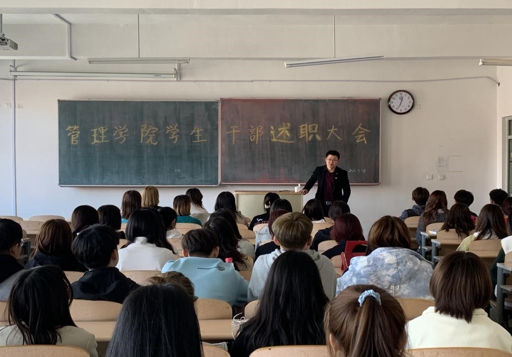 为进一步加强学生干部队伍建设,提升学生干部队伍向心力、凝聚力,促进学生干部责任意识,更好地开展本学期工作,管理学院于3月30日在博雅楼1区311组织召开学生干部述职大会。