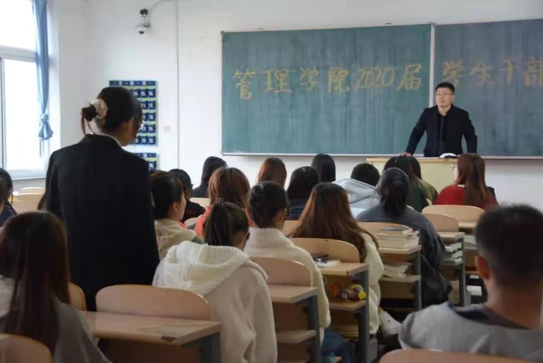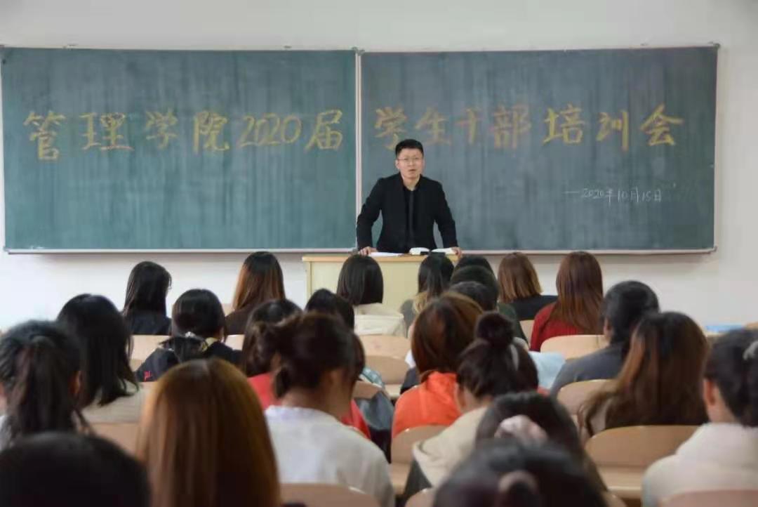 近期,管理学院完成了新一届学生会换届工作。为加强对新一届学生会干部的教育、培养和管理,加强学生会干部队伍的凝聚力、战斗力,提高学生会干部的整体素质,管理学院于10月15日举行了2020届学生干部培训会,学院党总支副书记凌正魁为新一届学生干部做集体培训。