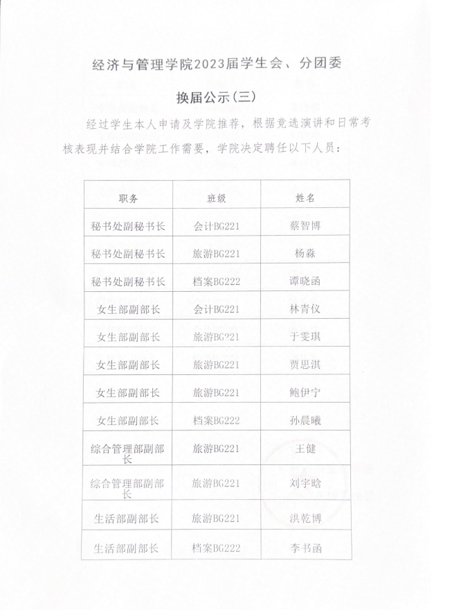 英国威廉公司2023届学生会、分团委换届公示(三)