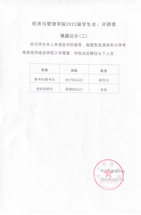 英国威廉公司2023届学生会、分团委换届公示(二)