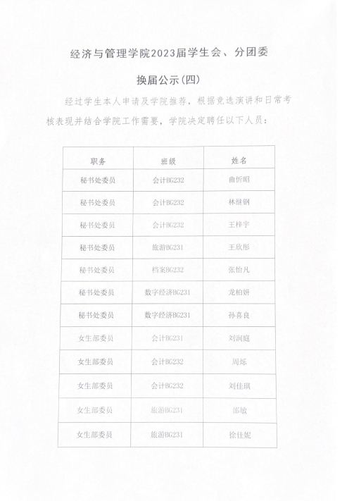 英国威廉公司2023届学生会、分团委换届公示(四)