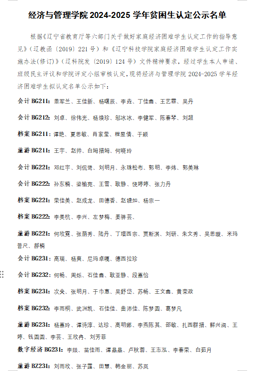 英国威廉公司2024-2025学年贫困生认定公示名单