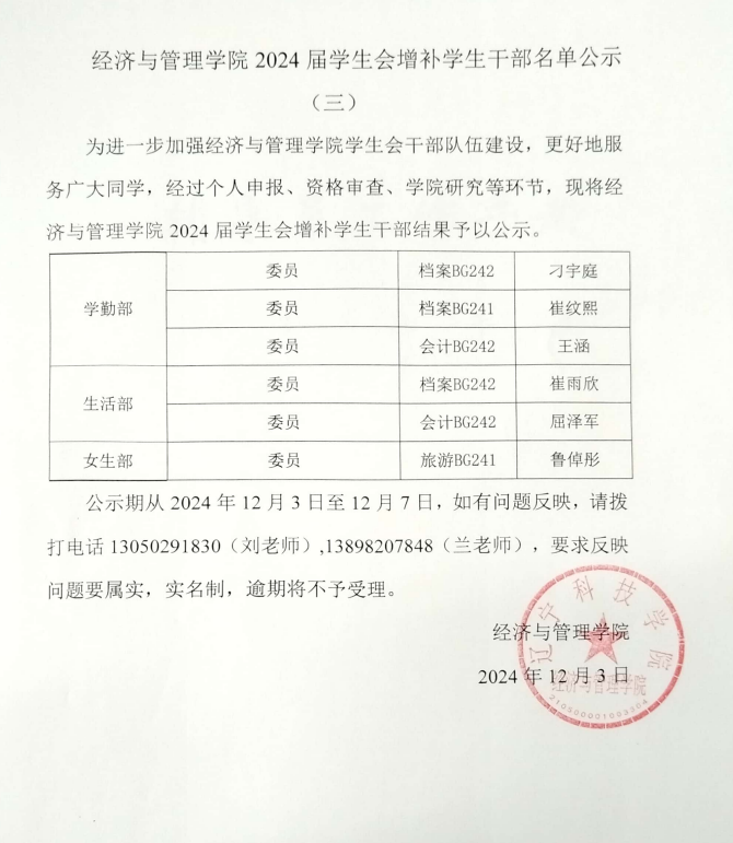 英国威廉公司2024届学生会增补学生干部名单公示