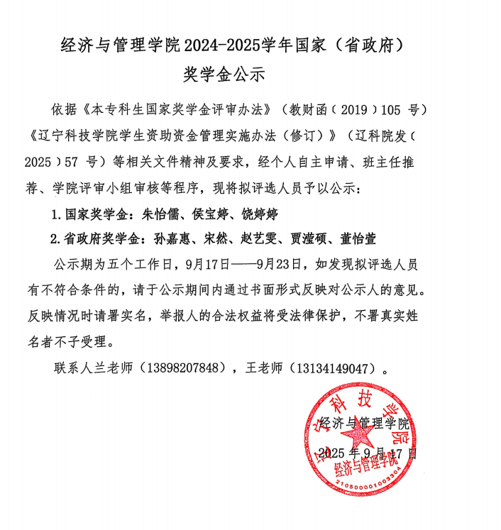 英国威廉公司2024-2025学年国家(省政府)奖学金公示