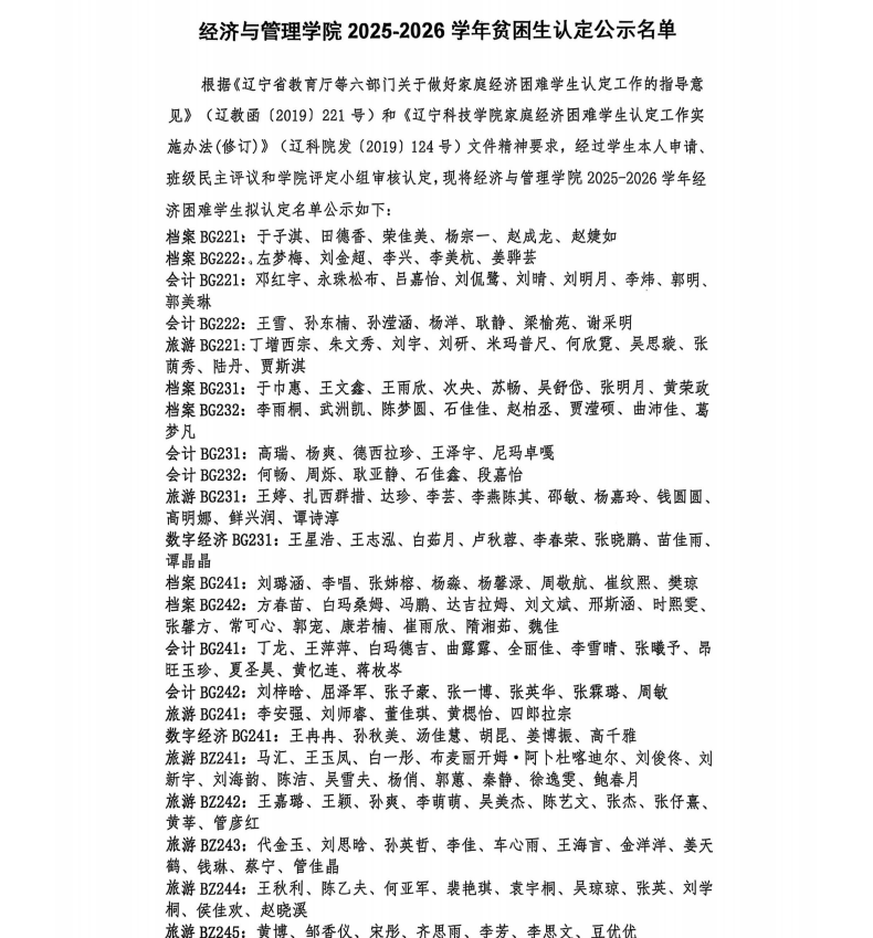 英国威廉公司2025-2026学年贫困生认定公示名单