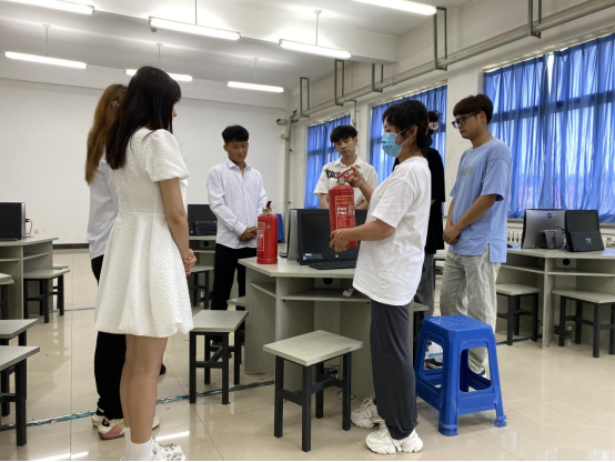实验安全员讲解演示灭火器的使用方法与注意事项