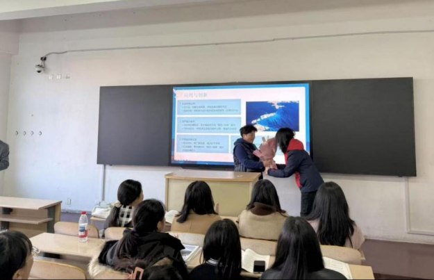 党总支书记孙丰在现场深情回顾了陆老师的执教历程。陆慧用一支粉笔绘就桃李满园的壮美画卷,以三十六载坚守诠释了“学高为师、身正为范”的深刻内涵。“三尺讲台镌刻三十六载春秋,一支粉笔书写桃李芬芳满园”——既是对其教育生涯的高度凝练,更是对后辈学人的殷切期许。他勉励在场学子以陆老师为楷模,在求学路上脚踏实地,在未来征程中赓续前行。