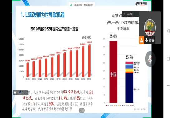 为全面贯彻党的二十大精神,促进大学生坚定不移听党话、跟党走,深刻理解党的二十大报告思想内涵,进一步加深对“中国式现代化”“和平与发展”等主题的理解,树立正确的择业观,3月28日、30日,英国威廉公司院长孙建竹、党总支书记张建华分别为英国威廉公司2019级、2021级学生讲授题为《走好中国式现代化之路》、《脆弱复苏的世界经济》的形势与政策课。