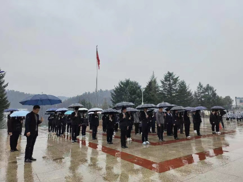 上午10时,烈士陵园气氛庄严肃穆,祭奠仪式正式开始,全体人员神情凝重,整齐列队。面对革命烈士纪念碑,学生代表向革命先烈敬献花篮,师生们向革命烈士默哀一分钟致敬,深切表达对英雄沉痛的哀悼和深切的思念,感受革命烈士不怕牺牲、英勇奋战的革命精神。