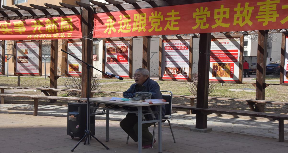 活动之初,由百合社区的老党员褚惠春和赵海峰两位同志通过自身经历和切身感受为大家讲述了中国共产党百年奋斗史。89岁的老党员褚慧春同志有着66年的党龄,他从中国共产党的成立讲到改革开放和社会主义现代化建设,这一百年是矢志践行初心使命的一百年,是艰辛奠基立业的一百年,是创造辉煌开辟未来的一百年,久经磨难的中华民族迎来了从站起来、富起来到强起来的伟大飞跃,迎来了实现中华民族伟大复兴的光明前景。百年恰是风华正茂,我们走过了千山万水,创造了足以让中国人民引以为豪的辉煌历史。