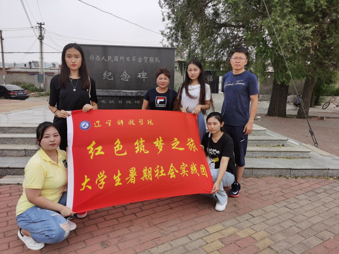 第三站葫芦岛分队由管理学院党总支副书记凌正魁、旅游教研室陆慧老师带领,会计BG181赫雨薇、旅游BG181李佳硕、档案BG181薛航、陆瑶等四名同学组成实践团队。锦西人民围歼日军古贺联队遗址位于葫芦岛市连山区钢屯镇钢南村,为纪念当年的抗战英勇事迹,该遗址于1984年被锦西县人民政府公布为县级文物保护单位。在钢南村的路南,矗立着一块墨黑色大理石材质石碑,上书“锦西人民围歼日军古贺联队纪念碑”,这是2005年7月中共连山区委、区政府在歼灭日军古贺联队遗址上修建的。为更好地深入了解当年那段历史,实践团队联系到了连山区政协文教卫体主任刘素平女士,刘主任向实践团队成员详细介绍了辽西义勇军与日寇英勇作战的光荣事迹:1932年1月4日,日军在军舰配合下占领连山和葫芦岛,日军第二十七骑兵联队迫不及待的奉命“扫荡锦西”。1月9日,日军第二十七骑兵联队在联队长古贺传太郎的率领下,向当时锦西县城以西的村庄进犯。城西的抗日群众在民团首领刘存起(亮山)的指挥下,在上坡子、西菜园子一带展开伏击,经过前后近四个小时激战,联队长古贺传太郎被击中负伤,当天下午毙命,同时共击毙包括古贺传太郎以下日军官兵19人,伤22人;缴获长短枪数十支,打死或缴获马匹40余匹。此次战斗是锦西人民抗日第一仗,也是取得胜利的第一仗,沉重打击了日本侵略者的嚣张气焰,在中国人民抗日战争史上写下了光辉的一页。