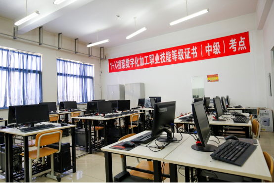 数字档案综合管理实训中心始建于2016年,实验室面积110平方米,主要设备有大幅面扫描仪、复印机、切纸机、多孔冲孔机等,单反相机25台、数码摄像机20台、计算机25台、扫描仪12台,总价值592935元。