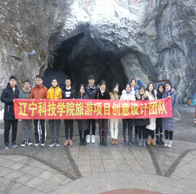 图2:曲景慧老师带领旅游项目创意团队在本溪水洞调研