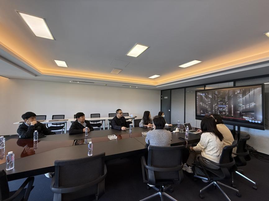 孙建竹对企业的热情接待表示感谢,详细介绍了学院基本情况以及近年来快速发展所取得的成绩。他表示,校企合作是实现教育资源共享、推动人才培养与市场需求有效对接的重要途径,希望双方搭建合作平台,在学生实习就业、学科竞赛、社会服务、校企协同育人等方面紧密交流,对接好人才与企业的“最后一公里”。许婷婷和兰恭文分别从社会服务、学生就业指导等角度与企业相关人员进行了深入交流。