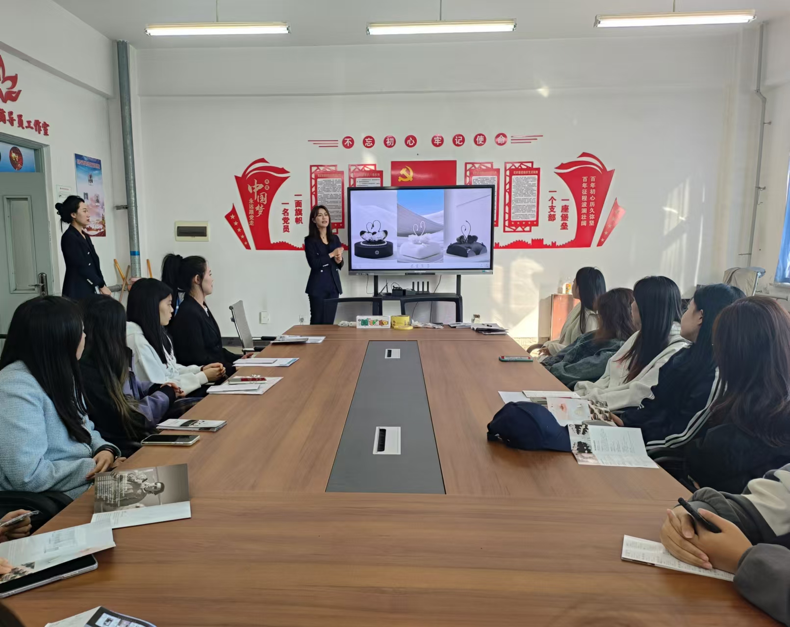 好利来集团人事招聘经理介绍了好利来品牌的发展历程、企业文化、福利待遇以及招聘岗位的详细信息,并与同学们进行互动交流,解答他们的疑问。