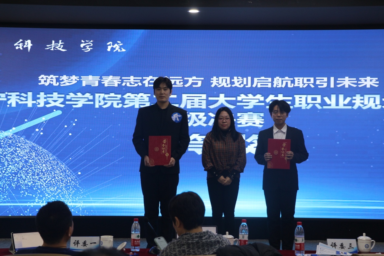 决赛中,各位选手通过主题陈述、综合面试和天降Offer三个环节展示了他们的职业规划。学院学生在比赛中从自我认知、职业认知、职业定位、计划实施、评估调整、自我总结六个方面对自己的职业规划进行阐述,并熟练运用职业兴趣测评、霍兰德测试、SWOT分析对自己进行剖析。结合自身认知、生活实际、环境情况进行分析,从而更加清晰坚定地确立自身目标,为自己的职业规划奠定基础。充分发挥出个人主观能动性,并根据自己的职业价值观,综合分析社会环境、家庭环境、学校环境等各方面的因素,确立一个符合自己现实情况的未来自我规划方案。整个比赛过程紧张有序,学生们的职业生涯规划设计作品整体结构完整、逻辑清晰、职业生涯目标制定得贴切合理,得到了评委们的一致好评,充分展示出学生们扎实的专业知识和较强的综合能力。
