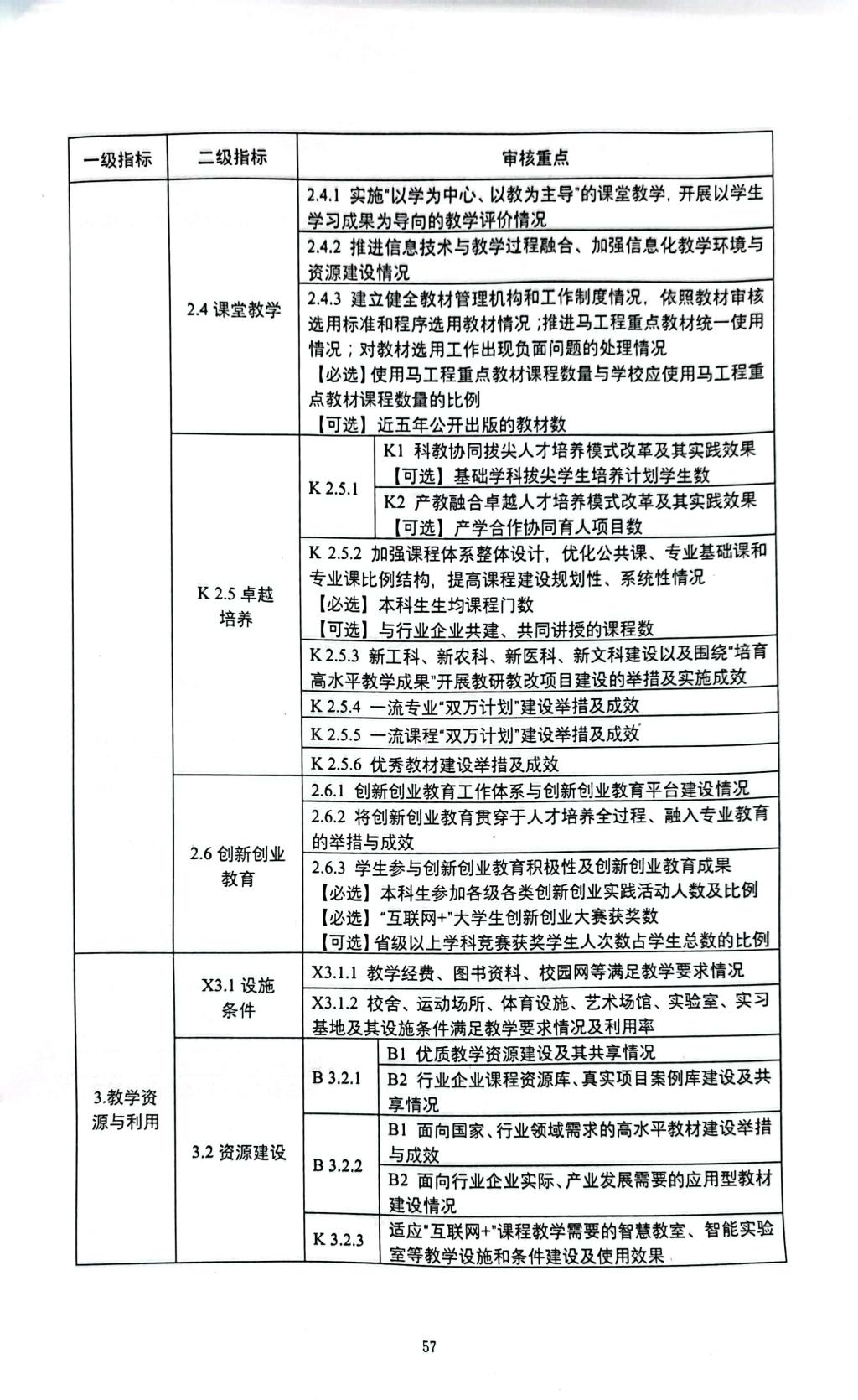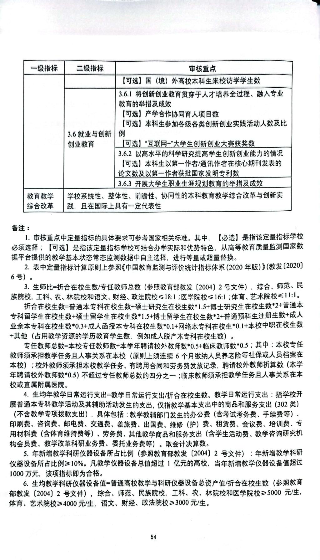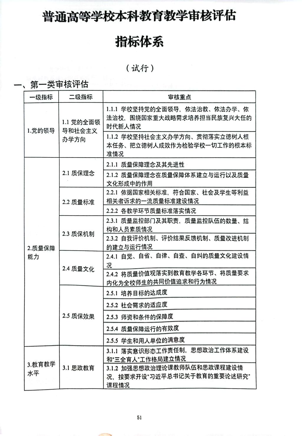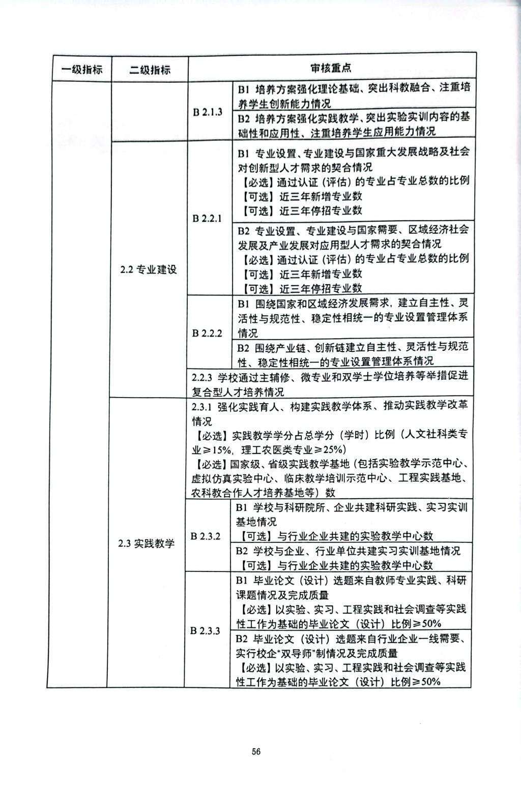 普通高等学校本科教育教学审核评估指标体系(试行)