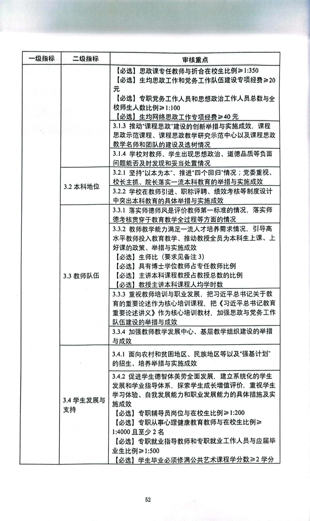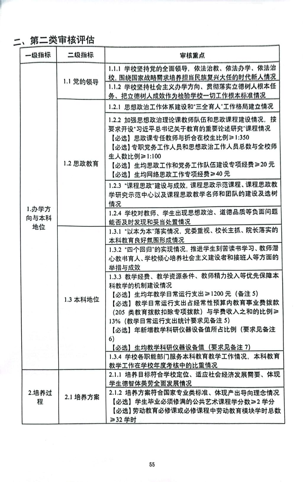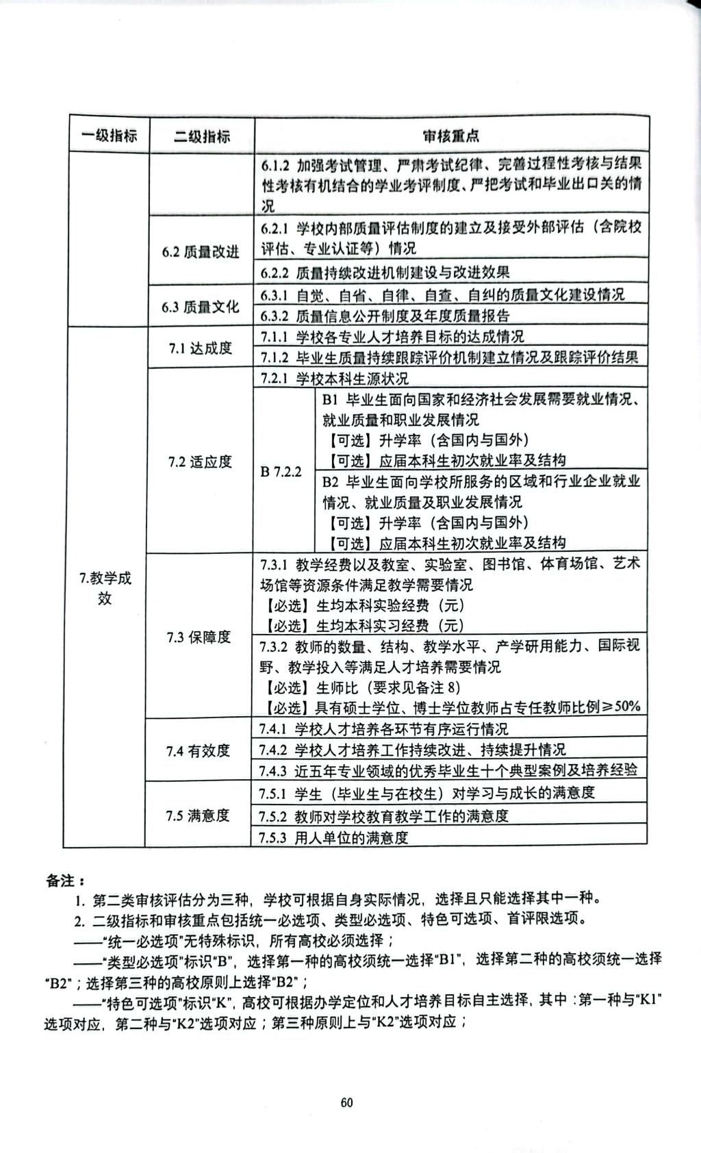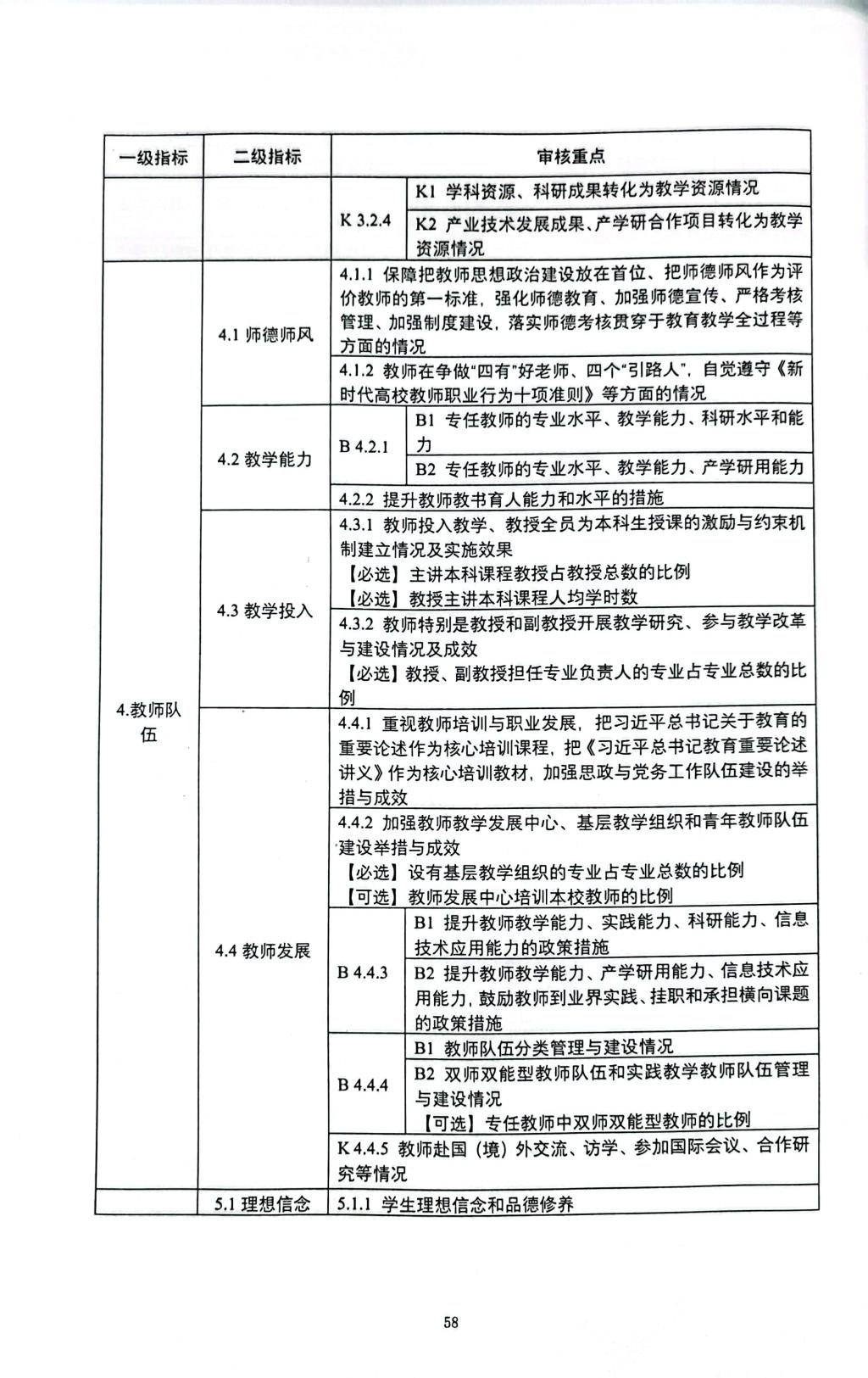 普通高等学校本科教育教学审核评估指标体系(试行)