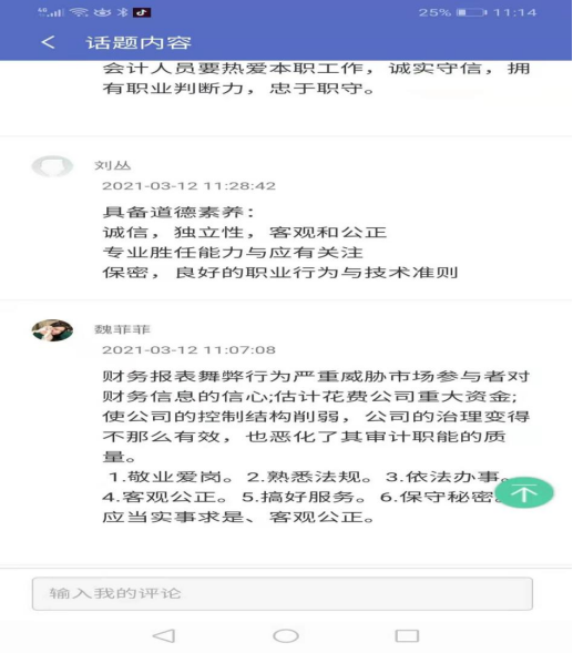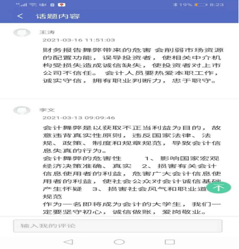 学生线上讨论部分观点: