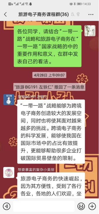 在课堂教学方面,凝聚课程思政合力。将思政元素融入《旅游电子商务》课程,充分发挥课堂主渠道在高校思想政治工作中的作用。推动专业知识教学与思想政治教育紧密结合,帮助学生形成正确的世界观、人生观、价值观,增强学生的国情意识、社会责任感和主人翁意识。