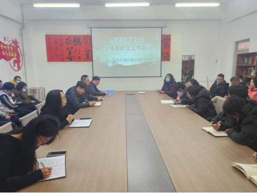为全面开启新学期工作,凝聚教职工力量,推动学院各项事业高质量发展,2月23日上午,学院在406会议室召开了全体教职工大会。会议由院长孙建竹主持,全体教职工参加会议。
