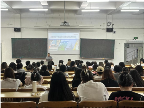 在授课中,孙建竹从中国式现代化是人口规模巨大的现代化、是全体人民共同富裕的现代化、是物质文明和精神文明相协调的现代化、是人与自然和谐共生的现代化、是走和平发展道路的现代化等五个方面分别讲解,向学生们阐释了“中国式现代化之路”的深刻内涵。他强调,在当前,外部环境和内部条件错综复杂的情况下,要加快实现高水平科技自立自强,统筹推进城乡区域协调发展,全面推进美丽中国建设。他勉励学生们,要深怀爱国之心、砥砺报国之志,不断提高自己,刻苦学习,肩负起时代赋予的使命责任,为实现中华民族伟大复兴作出新的贡献。