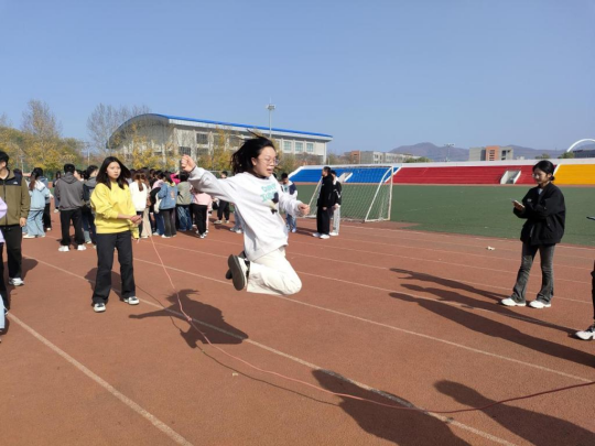 参加跳大绳比赛的同学们身姿敏捷、轻盈跳跃,无论是一气呵成的“零失误”,还是失误后的“分秒必争”,都是同学们奋勇拼搏的见证,他们将努力拼搏、挑战自我、追求卓越的体育精神诠释得淋漓尽致。同学们身轻如燕,预备、聚神、蓄势下蹲、起跳、落地,绳影翩跹,交织着力与美,每个人都表现出了非凡的实力。