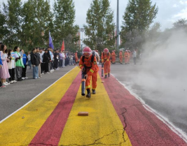 实践拓展环节,本溪市林草局专业森林扑火队员,现场向学生们讲解森林火灾火场的自救方法,并做了森林扑火演练,帮助广大学生提高自身扑救初期火灾的实践能力,进一步增强森林草原防灭火意识。学生们在森林扑火队员指导下,开展了投掷仿真灭火弹、使用枫林灭火机吹砖头等实践活动,切实体会到森林草原防灭火的艰辛与责任。