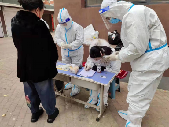 寒风阻挡不了春天的脚步,黑夜遮蔽不住黎明的曙光。位于辽宁省葫芦岛市绥中县工人社区,会计BS202张雅萱同学毅然决然加入志愿者行列,用坚毅担起责任,用行动竖起标杆。她们来到中风险小区录入信息,不畏天气严寒,不惧疫情风险,挨家挨户上门做核酸,做完核酸贴封条、消毒。作为疫情战争中的逆行者,用实际行动和辛勤的汗水展示了新时代青年大学生积极向上的良好精神风貌,展现了“奉献、友爱、互助进步”的抗疫精神。