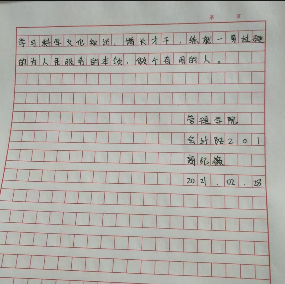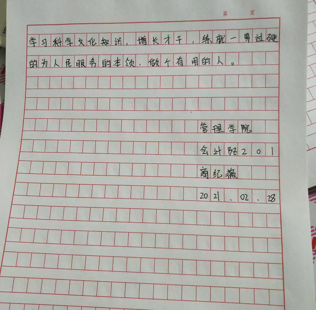 团课结束后,同学们在线下书写了心得感悟,表示要在实现中华民族伟大复兴的征程中,把崇高的理想信念和道德品质追求转化为具体行动,将自己所学所会投身到无尽地为人民服务当中去。