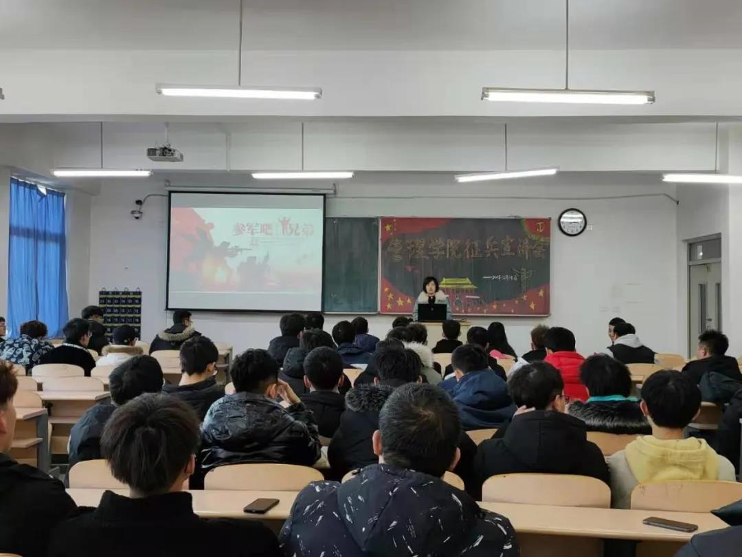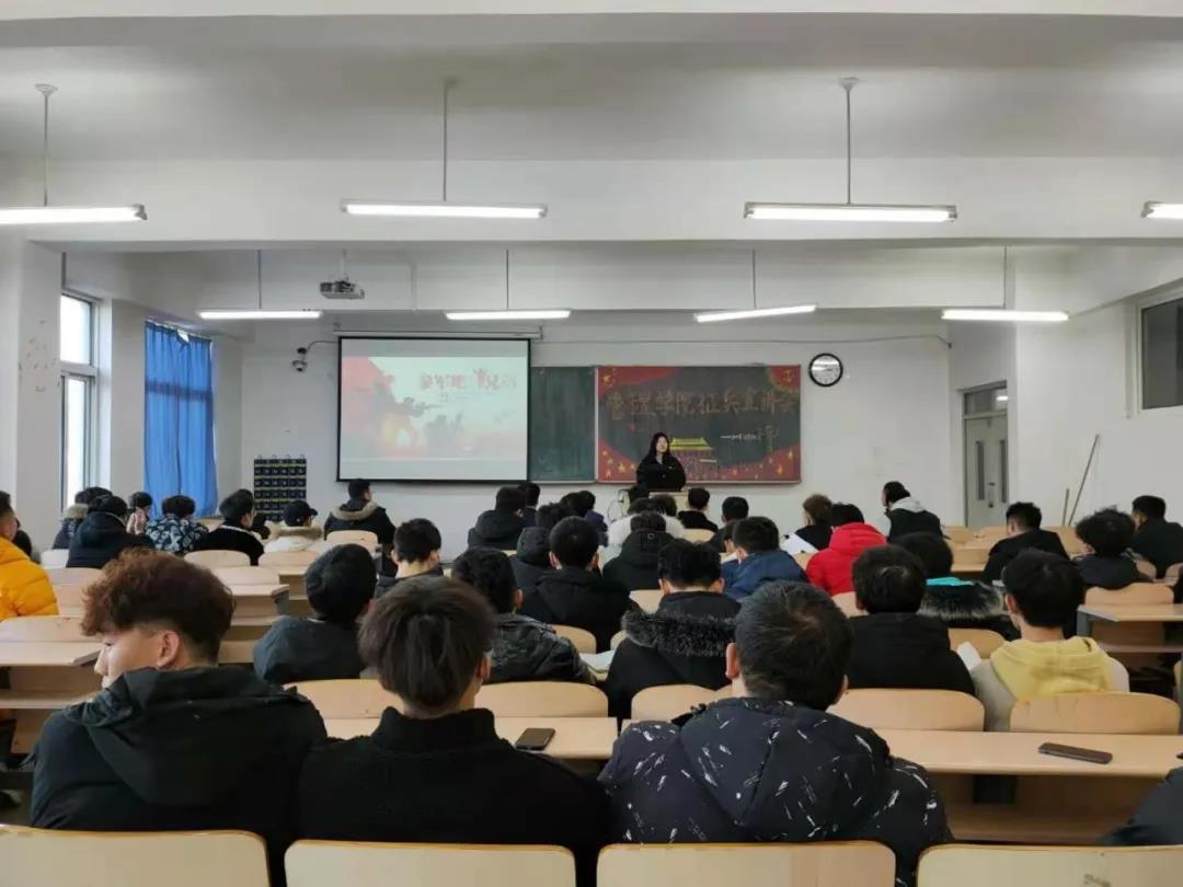 为了全面落实2021年大学生征兵工作,积极配合省教育厅、省征兵办及本溪市军分区、溪湖区武装部的征兵工作文件要求,同时树立大学生正确的人生观、价值观,弘扬艰苦奋斗精神,管理学院于12月14日下午15:00在博慧楼一区311举行了征兵宣讲会,此次宣讲会特别邀请了退役大学生王瑶、王迪、张先浩三位同学为大家作宣讲。