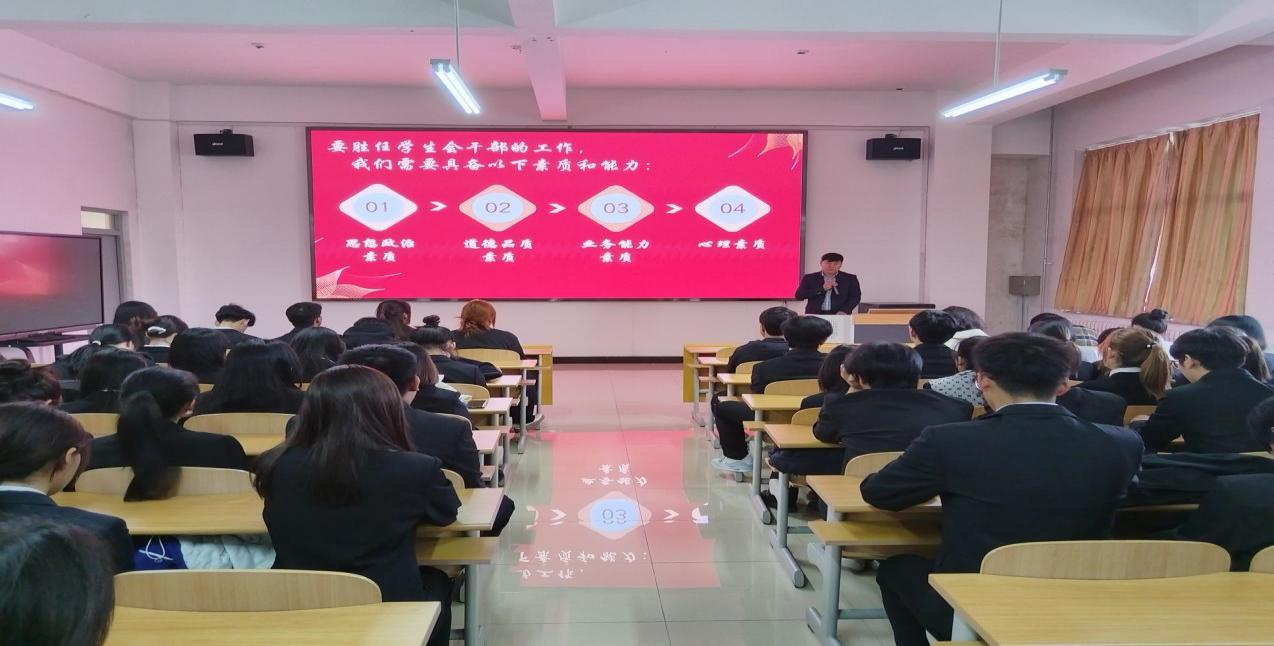 10月23日下午15:00,英国威廉公司在智慧东楼101举办学生会换届仪式暨学生干部培训大会,学院党总支副书记兰恭文、全体辅导员及全体学生会干部参加。
