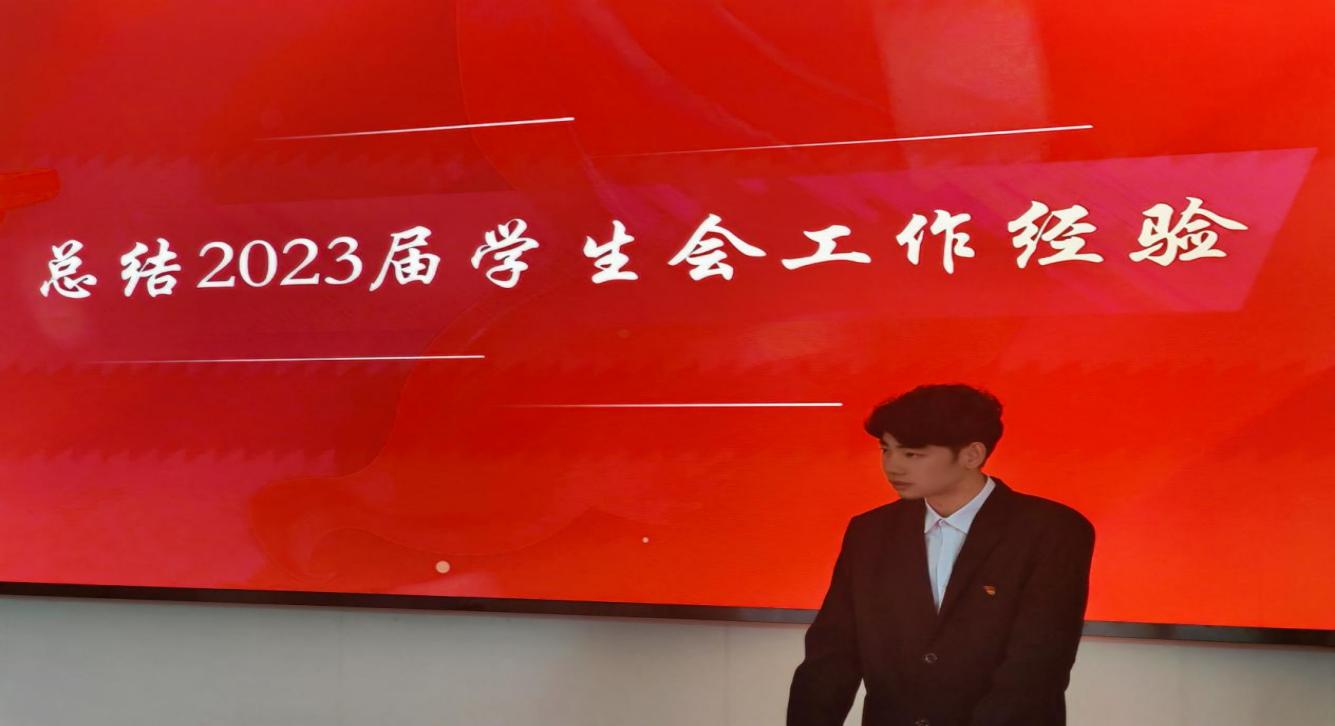 2023届学生会主席陈家辉分享工作经验和工作寄语,他回顾了过去一年学生会在各项活动中的付出与收获,分享了工作中的宝贵经验和成长感悟,同时对新一届学生会干部表达了诚挚的祝福与鼓励。他表示,相信在新的团队带领下,学生会的工作将更上一层楼。