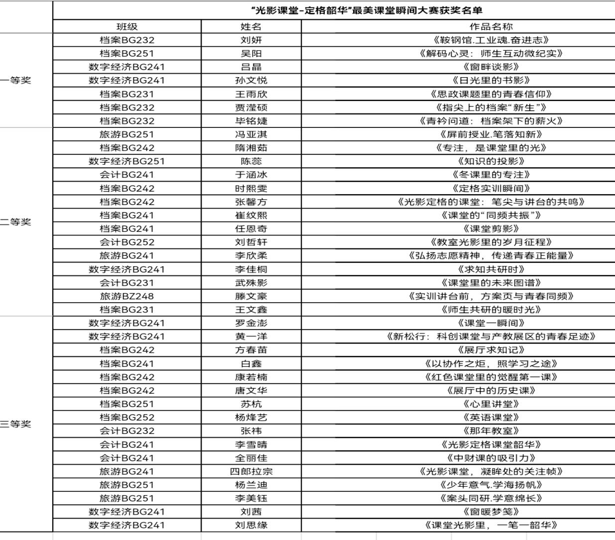 本次“最美课堂瞬间”摄影比赛不仅是一次艺术创作的实践,更是一次学风建设的生动引导。通过镜头捕捉课堂中的专注与活力,让同学们在记录与欣赏中增强学习的主动性与积极性,进一步营造了“比学赶超”的良好课堂氛围。未来,经济与学院将继续开展多样化的学风建设活动,以丰富的形式激发学生的学习热情,让每一堂课都成为韶华岁月中值得珍藏的美好记忆。